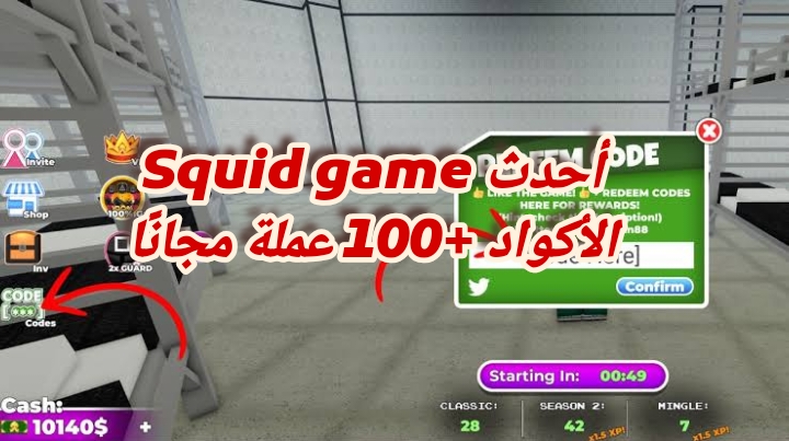 Squid game أحدث الأكواد +100 عملة مجانًا